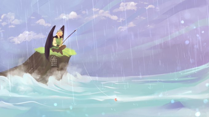 tried painting this all on one layer, bad idea, might never do again. fishing in the rain :p // #philzafanart