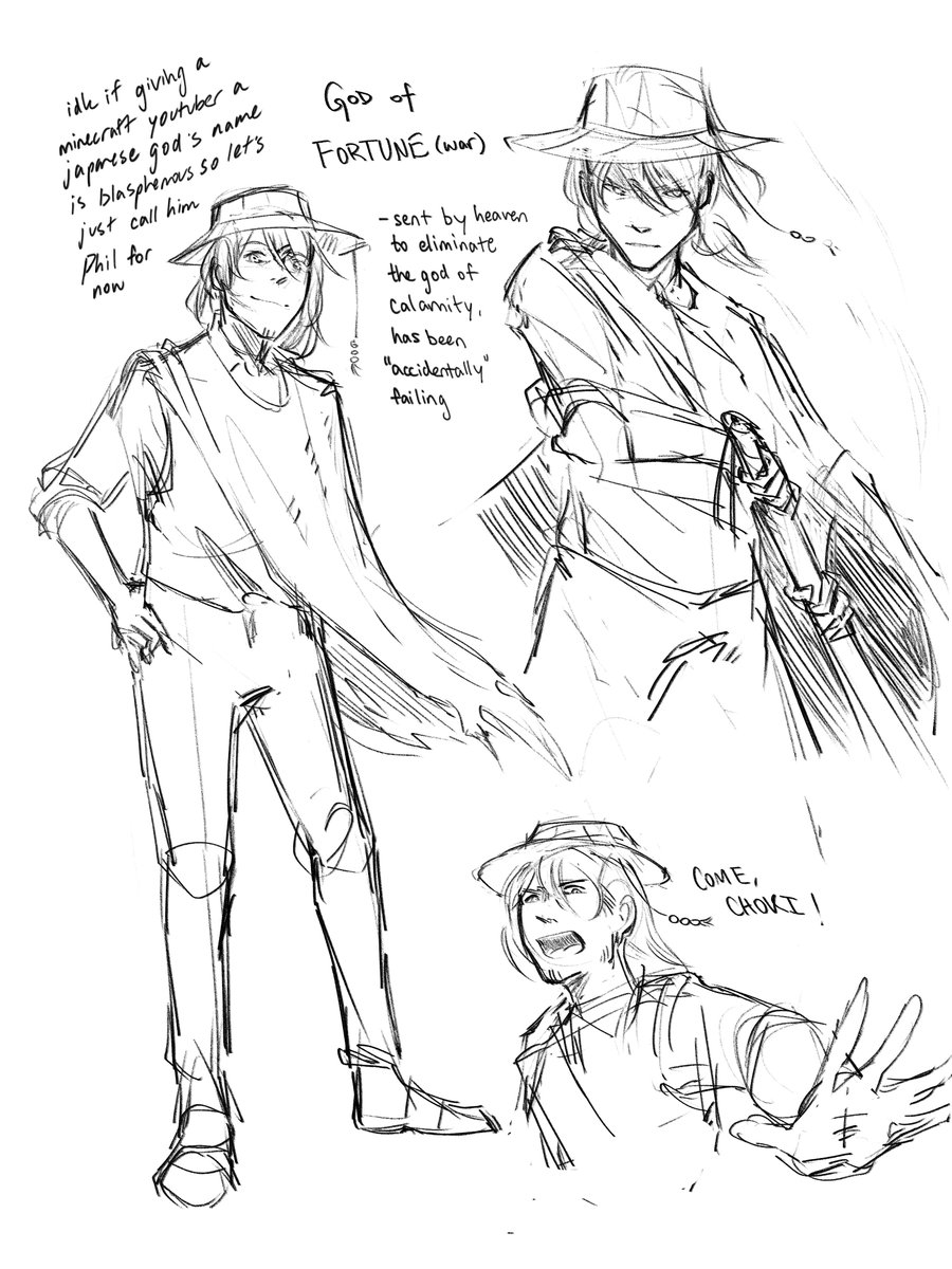 sbi noragami au (2/4), phil he's supposed to be bishamonten's counterpart but idk if calling him that would be rude so. anyways he's quirky, picked techno's spirit up from a battlefield at some point. he should have other shinki but i've got no ideas for now. #philzafanart