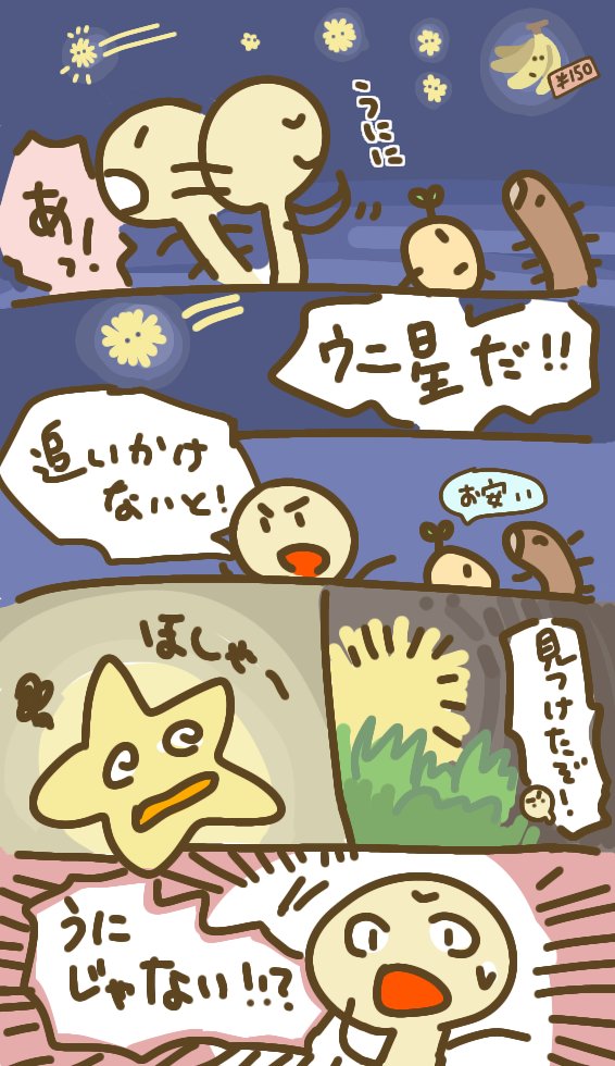続いてしまったえのうに~ #えのき #いそめ #おまめ #ウニ #たこ #ヒトデ #漫画が読めるハッシュタグ twitter.com/ashinoaruEno…
