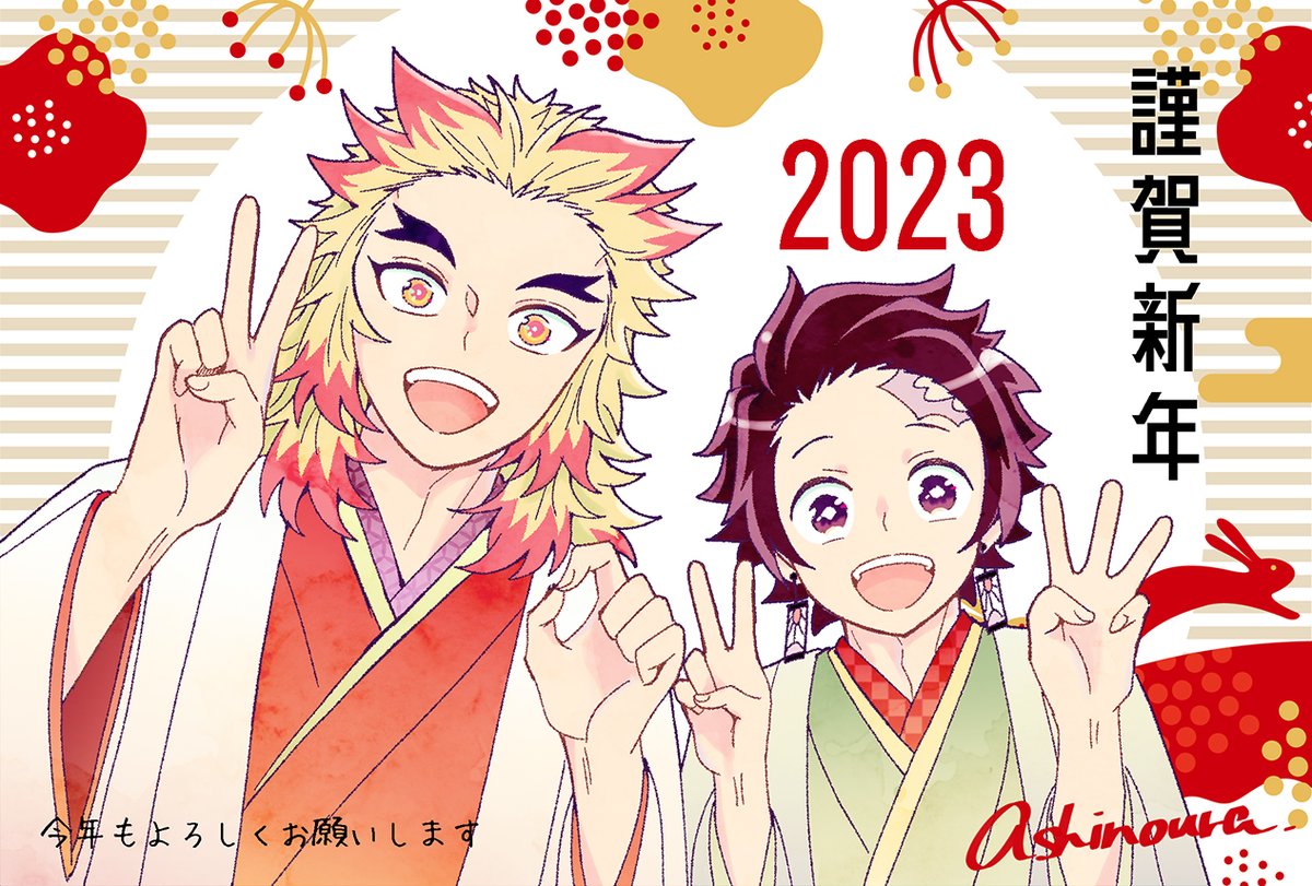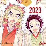 32 225 あけましておめでとうございます🌅 昨年は拙作にお付き合いいただきありがとうございました。本年もよろしくお願いいたします。 こちらやっつけですが🔥🎴同棲報告兼年賀状風イラストです。🎴が描いた謎の動物が後日物議をかもします。 23/01/01 00:16