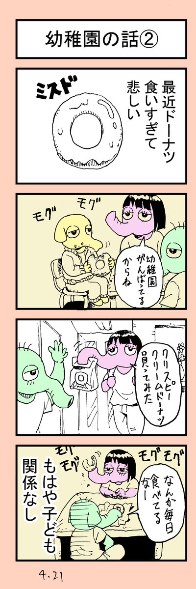 最近ドーナツ食いすぎて悲しい 悲しい話~幼稚園編~はブログにて先行公開しております↓↓ ashitabado.blog.jp #漫画が読めるハッシュタグ #育児漫画 #四コマ漫画 #幼稚園 #ドーナツ