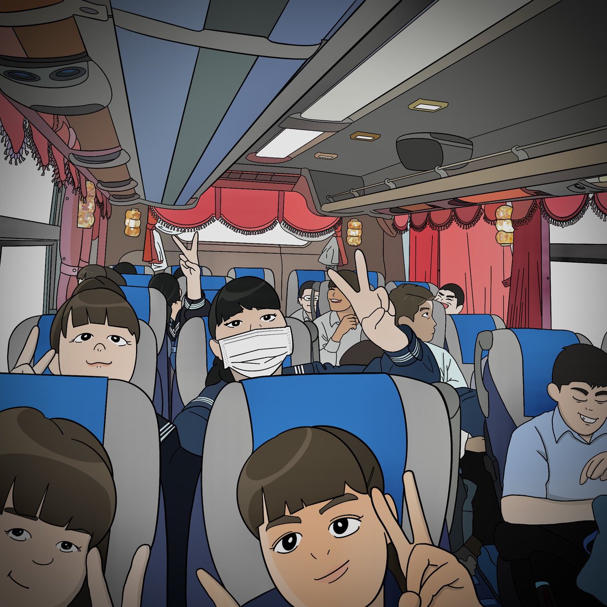楽しいバスの中🚌😊♪ #イラスト #イラスト好きな人と繋がりたい