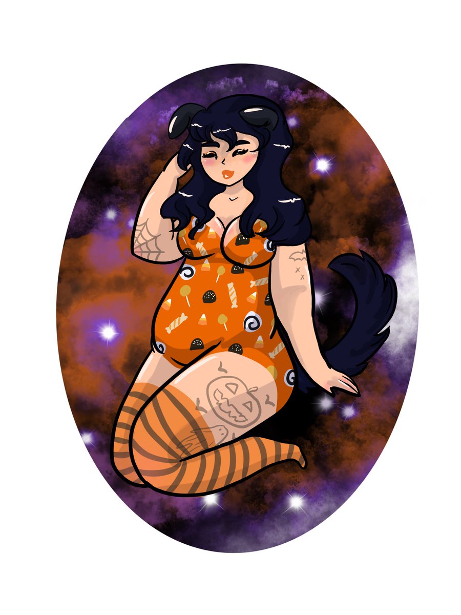 I had a lot of fun drawing her outfit #artist #cute #october #halloween #inktober #artober #drawingprompt #illustration #drawing #inking #procreate #digitalart #artistsoninstagram #instaart #halloweencostume #anime #spooky #puppygirl