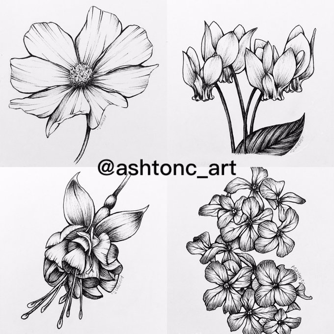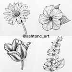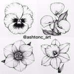 Inktober Days 25 - 28 😎🖋 💐🌸🌺🌼🌻🌷🌹 #inktober #inktober2020 #pansy #callalily #hellebore #daffodil #flowers