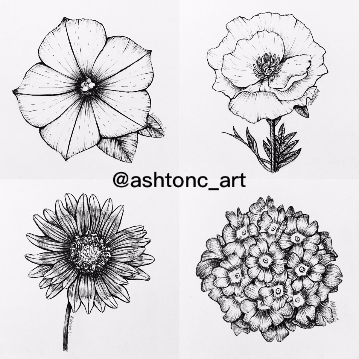 Inktober Days 9 - 12 😎🖋 💐🌸🌺🌼🌻🌷🌹 #inktober #inktober2020 #petunia #poppy #gaillardia #verbena #flowers