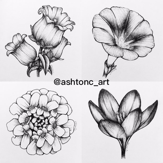 Inktober Days 17 - 20 😎🖋 💐🌸🌺🌼🌻🌷🌹 #inktober #inktober2020 #canterburybells #morningglory #candytuft #crocus #flowers