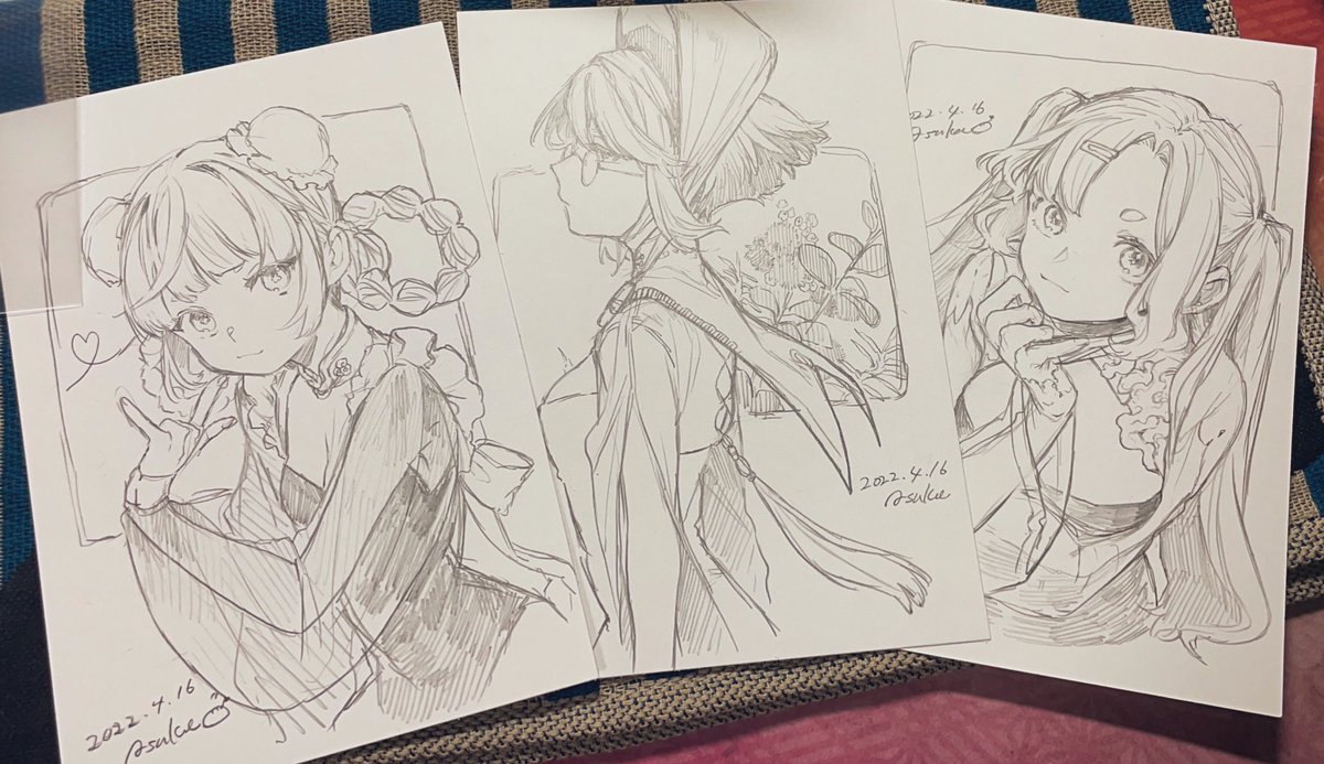 3 11 【ドローイング自家通販】 よろしくお願い申し上げますー! ▶︎サイズ:葉書 左から1〜3 /又は位置でどうぞ! ▶︎各種4000円 +ミニ絵(裏orぷち) (※1人2枚まで) ・リプで指定/先着順 ・口座振り込みが出来る方 >送料込み よろしくお願い申し上げます! 22/04/17 22:00