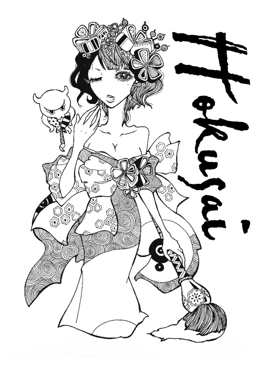4 70 新しいペンを試したくて描き描き𖧷 . #FGO #FGO4周年 #葛飾北斎 #イラスト #ペン画 #絵描きの輪 #落書き 19/08/12 03:42