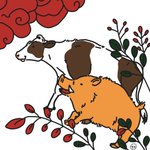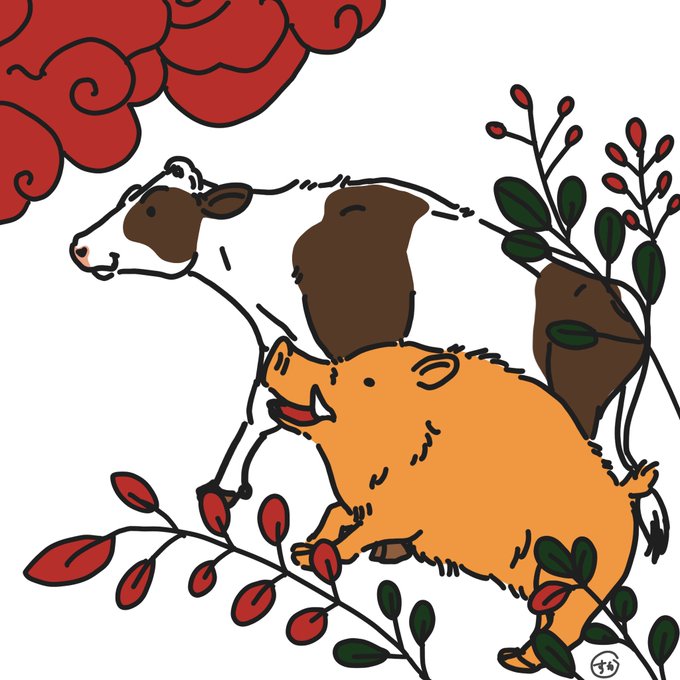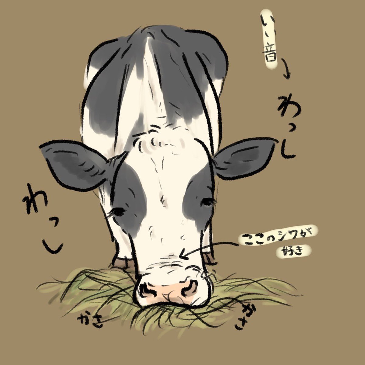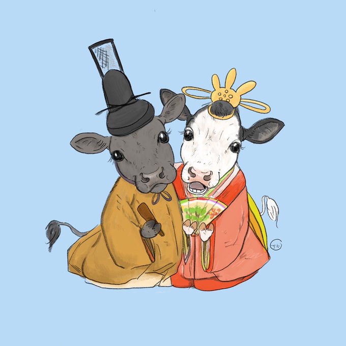 牛がカピバラみたいに温泉に入っているところ (Instagramのフォロワーさんからのリクエスト) #牛イラストリクエスト #牛乳月間 twitter.com/askaichigomow/…