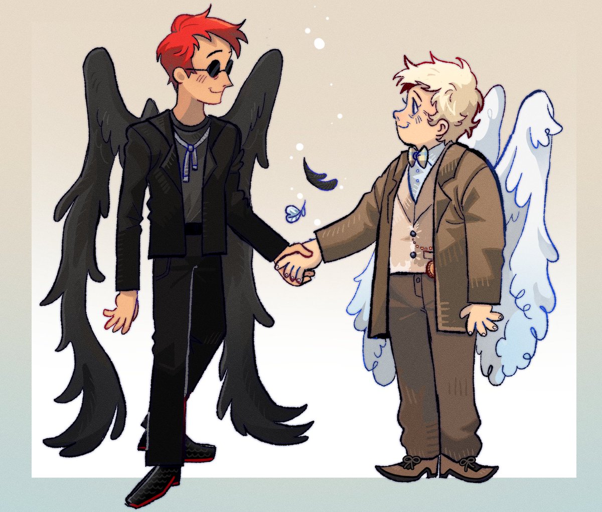 ok so the thing is crowley gifted the angel his feather or something but rly i just wanted to do a low effort drawing #GoodOmens #GoodOmensFanArt #ineffablehusbands