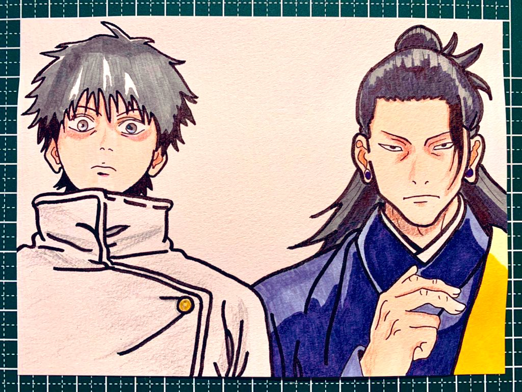 @mii46865627 参加失礼します。 アナログでファンアート描いてます。 よろしお願いします^ - ^ #絵描きさん交流会 #呪術廻戦