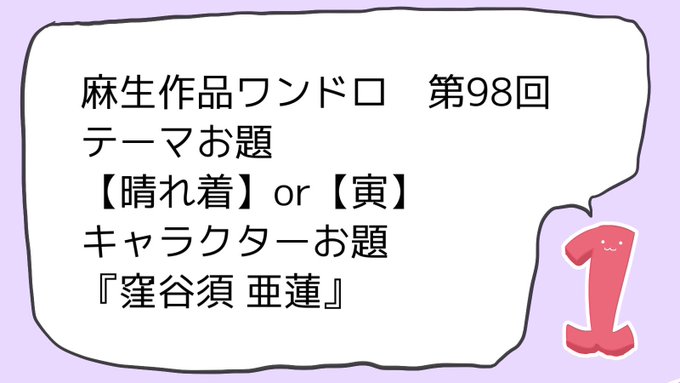 2 5 明日の開催予告です! <#麻生作品ワンドロ 第106回> 日時: 2/26(土) 21:00〜22:00 お題: 画像の3つから選んでください。 開始時間まで前回のお題で作品投稿可能です。 皆様のご参加をお待ちしております! 22/02/25 20:40