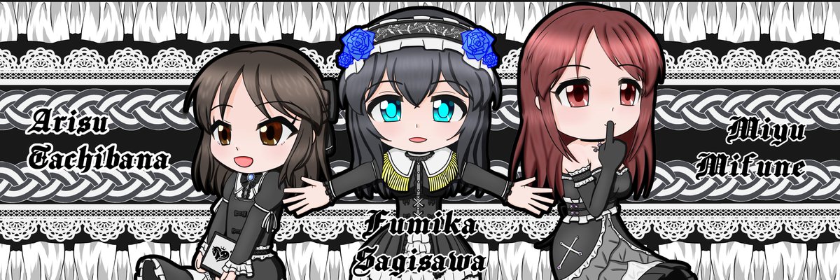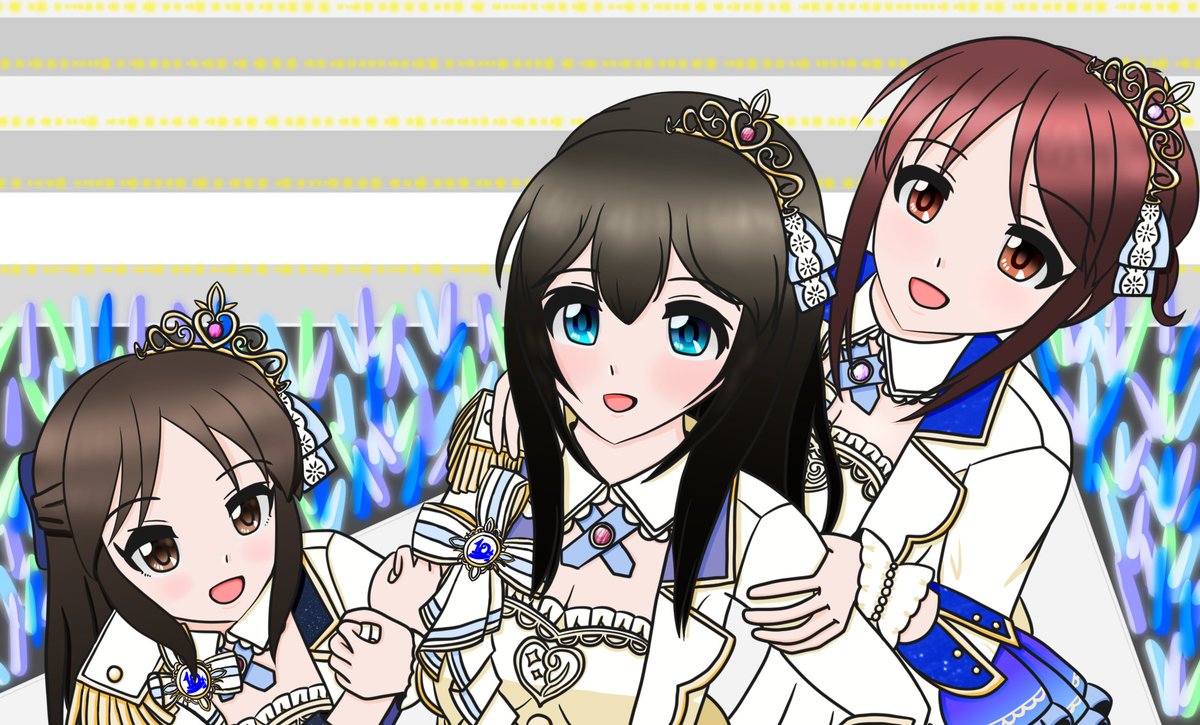 #今年も残りわずかなのでお気に入りの4枚を貼る ①1ヶ月位掛けて担当の描き方がわからないとなりつつもウチの担当アイドル達は世界一可愛い!!と躍起になって描いた名刺絵 ②ゴスロリチックなのは自分の趣味だ!何時か公式でも着てほしい ③ミユタイガーSSRのフラグ? ④ありす超可愛いで描いた一枚