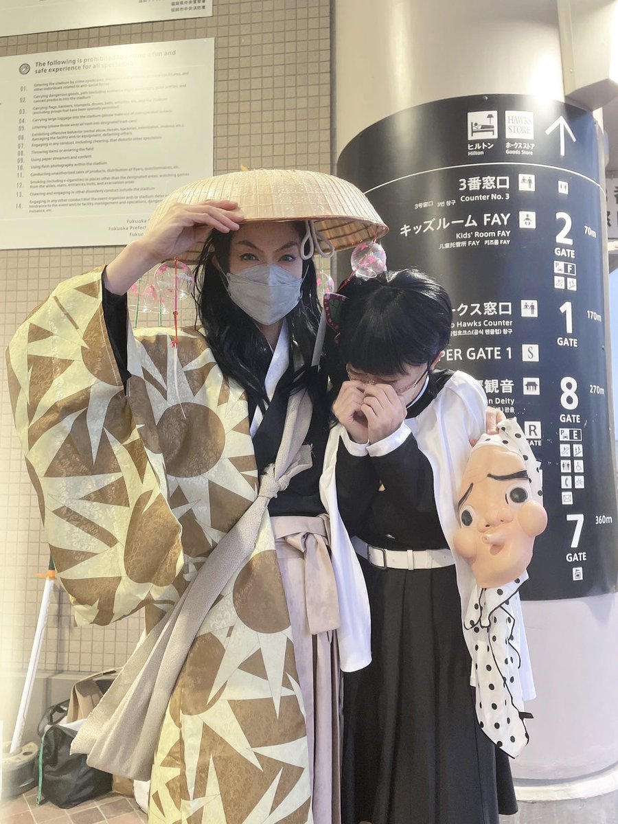 #アコスタ福岡paypayドーム 雷さんと気付かずに 「写真撮らせてください!」って声掛けてくれたのが うめとサクラやったんやけど 面白過ぎて正体バラさず ぺぺと写真撮って 推しを前にして震えてるぺぺが可愛過ぎて肩ギュン‼️って抱いたら ハムスターが寝る時ぐらい小さくなったの最高やったwww