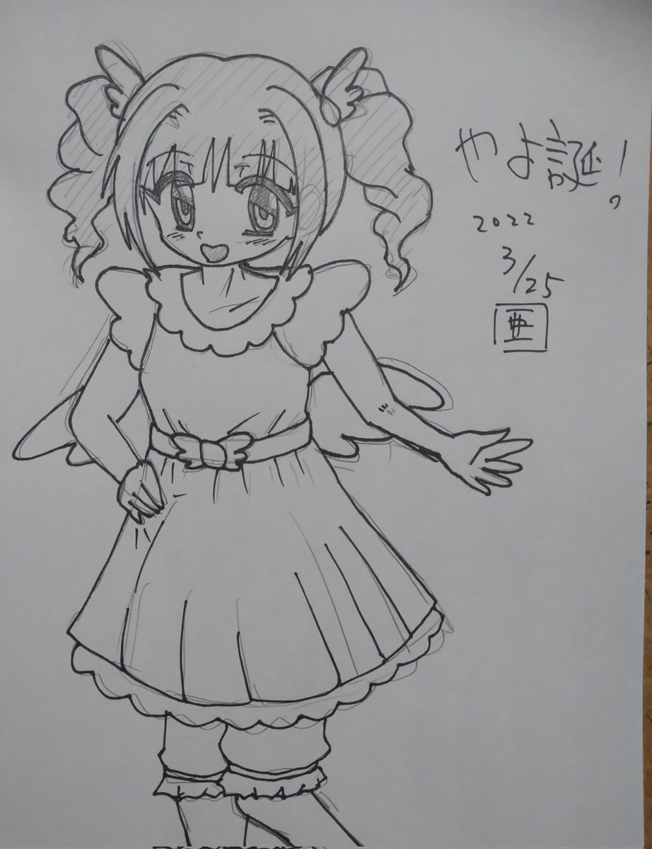 ウリンちゃん、お誕生日おめでとう~♪ 今年はお姉ちゃんの着ていた天使のコスチュームをプレゼント! #ウリンちゃん生誕祭2022 #ウリンちゃん誕生祭2022 #ウリンHBD2022 先日描いたツインエンジェルのクルミさんとの対になってます。いわゆる差分画像!