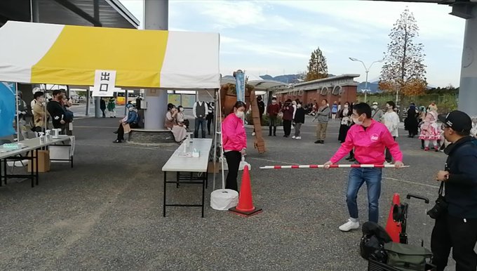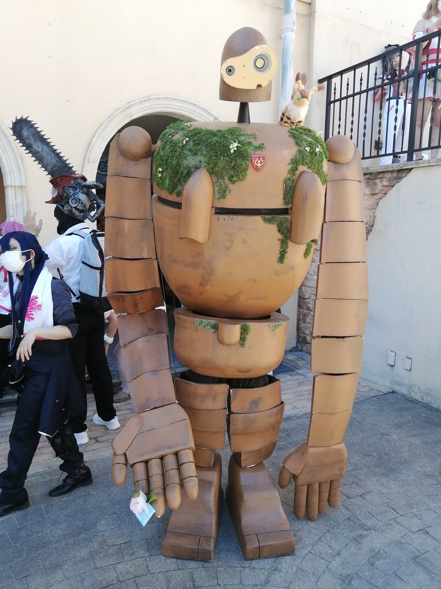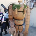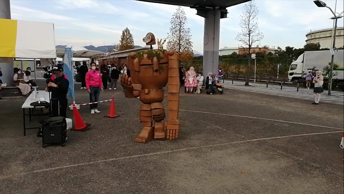 29 66 #富士コス ロボット兵、あまりもの大きさのため出入り口のテントを通過できず 横のポールを外してもらい通してもらい、人間に感謝の意を表す 22/11/19 15:08