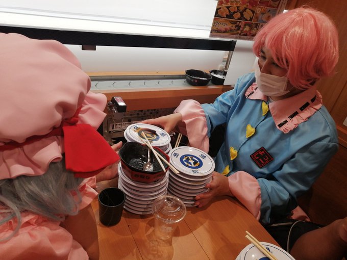 4 12 #コスサミ2022 くら寿司にて皿の押し付け合いをするさとりとレミリア 22/08/07 07:07
