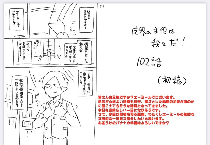 今週の魔主役冒頭の挨拶文ですが、なんとエーミールさん御本人が監修してくださいました!やはり"本物"の文章は違いますね…! エーミールさんありがとうございます☺️ #魔界の主役は我々だ twitter.com/wc_mairuma/sta…