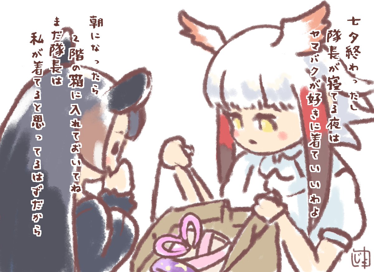 63 174 ショウジョウトキはヤマバクちゃんに織姫衣装見せるのが一番気分いいことわかっててやるタイプ 20/07/07 23:41