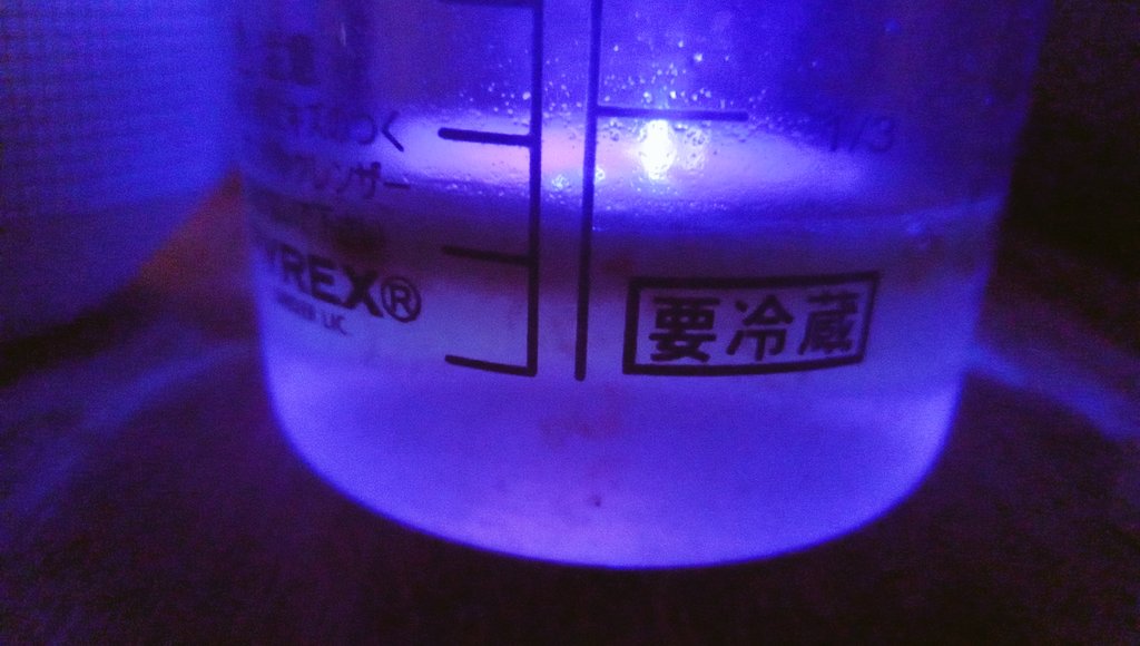 @thumb_tani マツキヨで販売されている梅こんぶ茶(顆粒)タイプでは赤いUV蛍光は見られませんでした。 同様の蛍光現象を試したい方の参考になれば…