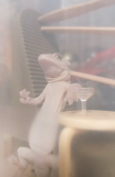 うちのヤモリ、酒の味覚えたてみたいな雰囲気出してくるようになった