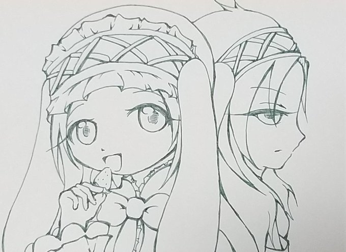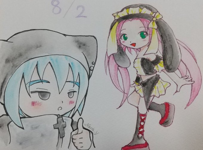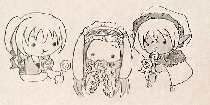 #見た絵師さん強制初投稿の絵と今の絵を比べる Twitterは2017年までしか遡れなかったので、旧サイトの初代トップページイラスト(2006年作)を初投稿として、今年の年賀イラストと比較。偶然ニノニナだったし。 画力はそれほど上がっていないけど、描きなれた感はあるかな?