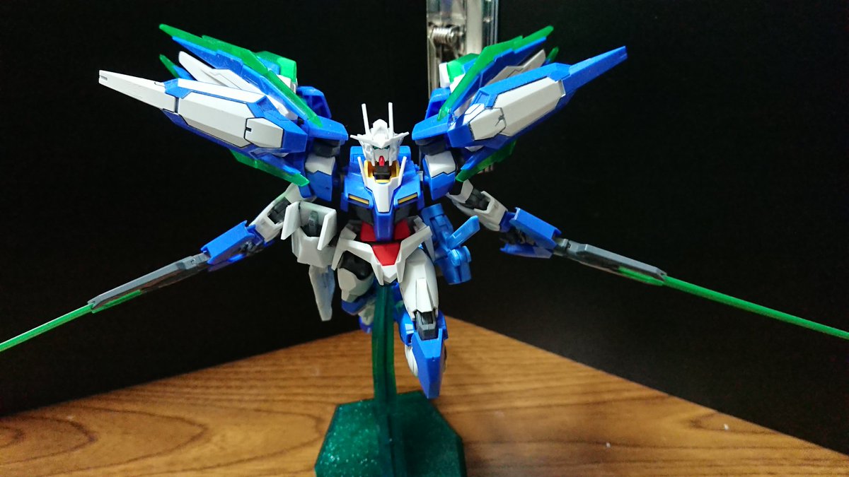 モチベ維持用の更新 GNソードⅡを完全に射撃特化へ変更したけど…… GNソードⅡブラスターで良かったんじゃねとか言わないであげて しかも腰に懸架したらボリュームありすぎて腕の稼働領域ががががが…… #ガンプラはどんな自由な発想で作ってもいいんだ #ガンプラの画像貼るとRTされると聞いて