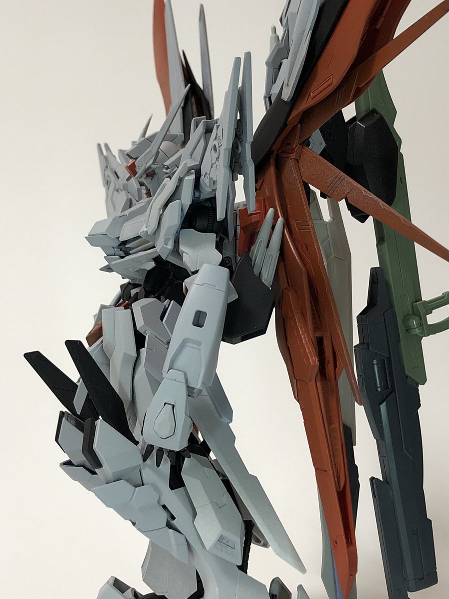 1/100ガンダムダブルオースカイ 頭部はこれにて完成とします。 苦労したツノを頑張った甲斐があった! ここからは本格的に肩を攻めます。 #ガンプラ #ガンプラの画像を貼るとRTされると聞いて