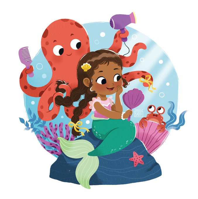 In case you didn't see it before, here's @drawbunnydraw's adorable mermaid for #mermay 🧜🏾♀️ Enjoy the rest of Pamela Barbieri's cute artwork here: astound.us/publishing/pam…