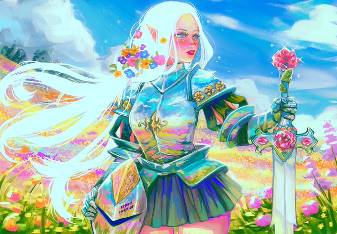 My entry for Day 27: Floral of #Swordtember 💐 I planned on making other entries but I focused on this one because I really like the concept of having very reflective armor 💖 #artph #artistsontwitter #swordtember2020