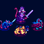 Heya #PortfolioDay 🌟 I'm Allison, a game dev and pixel artist that makes bright neon character-focused art! Here's some places you can find my work 🧵