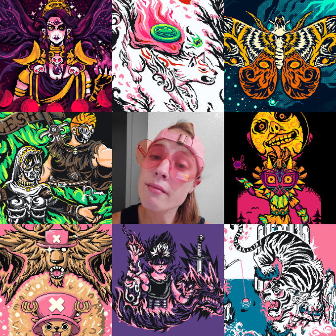 Hey, I'm one of those #ArtistOnTwitter! I'm Allison/Astra, an enby pixel artist. Here's some of my work
