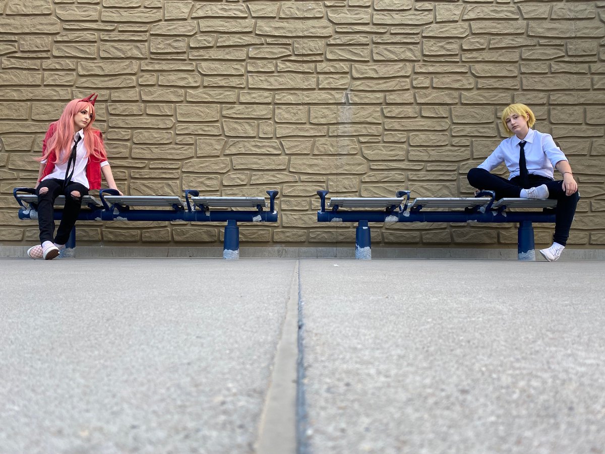 power and denji on the train. where are they headed? #csm #chainsawman #powercosplay #denjicosplay #chainsawmancosplay #cosplay #yyc #cosplayer #csmcosplay #powercsm #denjicsm