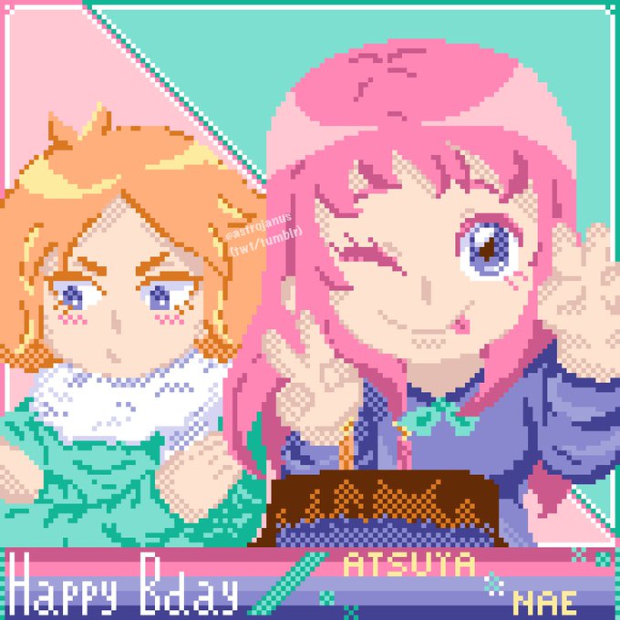 since atsuya and nae’s bdays are next to eachother i hc that their friends would probably choose to celebrate both together #吹雪アツヤ誕生祭2020 #吹雪アツヤ生誕祭2020 #白兎屋なえ誕生祭2020 #白兎屋なえ生誕祭2020 #InazumaEleven #pixelart