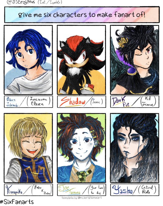 I should do more art challenges like this, it actually motivated me to put some effort and finish something properly for once anyways this was so FUN ! thank you to everyone who suggested a character ! #SixFanarts #sixfanartchallenge