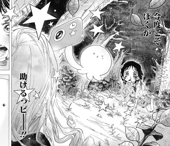 そもそも人を助ける行為として殴りかかる時点で変だ、とも言える。暴力を知らないならまず対話では? だけど今回で更に前の時間からのタイムリープが示唆されて、もしかしたらタコピーの人殺しで既に救われた人がいたのでは?「命を奪うとハッピーにできる」が記憶にあったのでは。 #タコピーの原罪