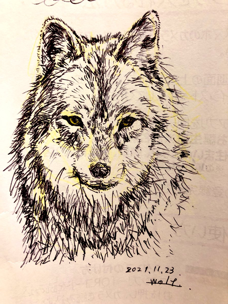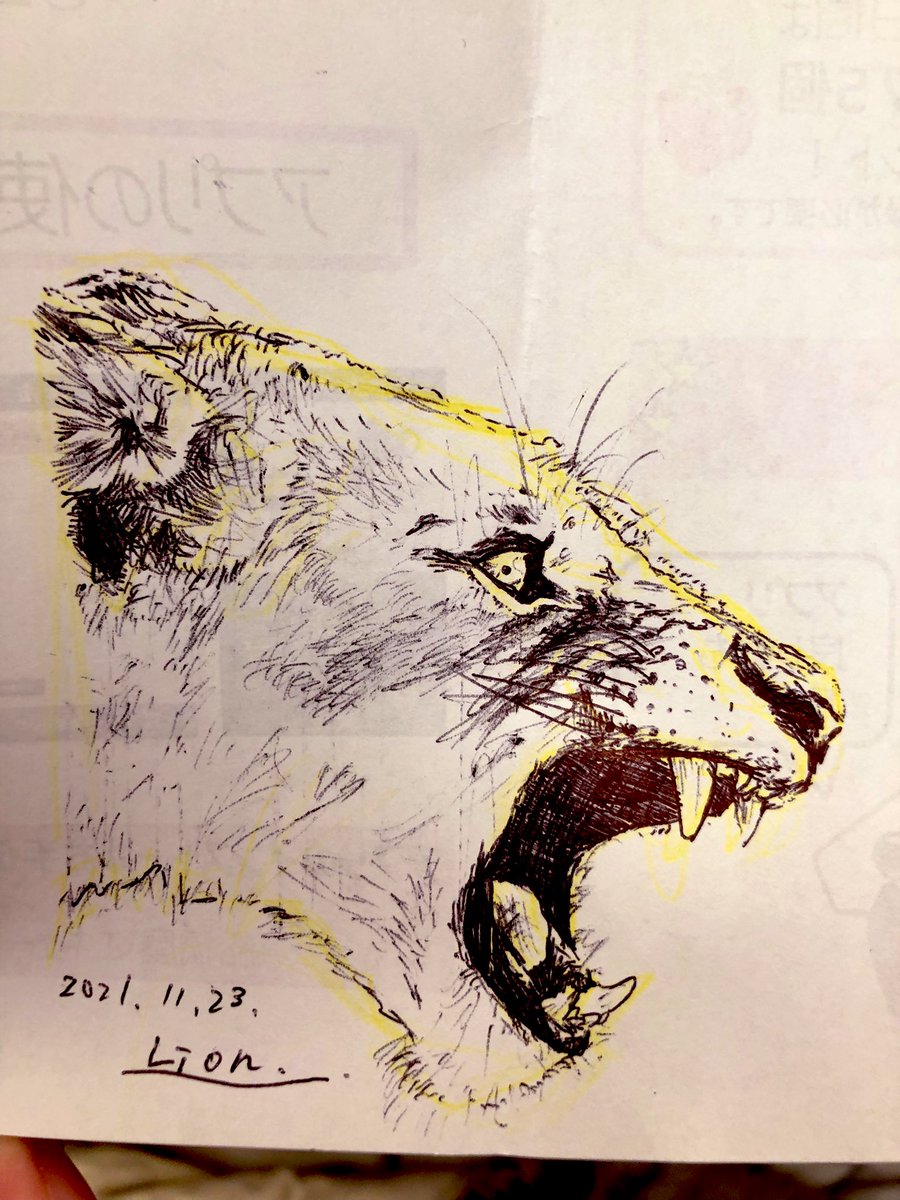 もう1年経つのか…!! #イラスト #落書き #ボールペン画 #ボールペン #オオカミ #Wolf #ライオン #Lion #バイク #アナログイラスト #art