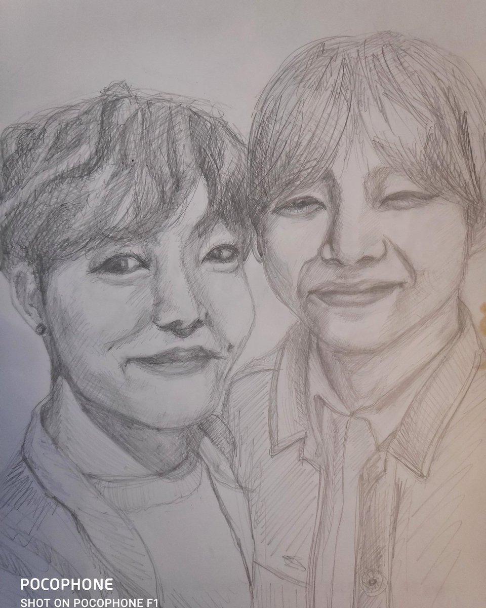 Well, I am happy with this one 😊💜 #drawing #fanart #kimtaehyung #v #btsv #jhope #jhopebts #jeonhoseok #전호석 #hobi #vhope #taehope #drawing #뷔 #태형 #taehyung #btsarmy #btsfanart #portrait #pencilsketch #drawings #bts #kpop #pencildrawing #방탄소녀단 #kpopfanart #asupage