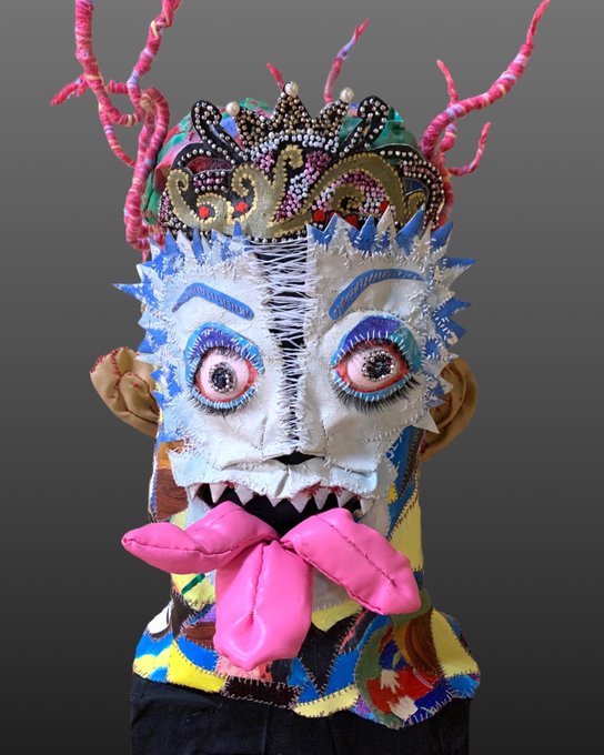 4 11 今回の作品は私自身の家族をテーマにしています。レスラーのマスクぽく被れる仕様になってます。邪念を込めて手縫いしてるので良い感じに仕上がりました🌞 ぜひ見にきてください🕺 #アート #渋谷ヒカリエ #ギャラリー #創作 #art #イラスト好きな人と繋がりたい 22/09/11 09:45