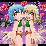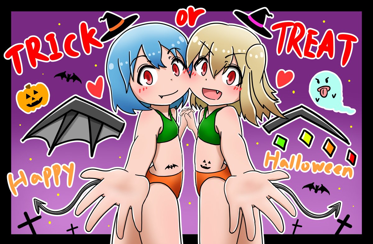 『お菓子くれないと、カプカプしちゃうぞ!』 ハッピーハロウィン! #東方Project #東方 #イラスト #イラスト好きな人と繋がりたい #イラスト好きさんと繋がりたい #ハロウィン #レミリア・スカーレット #フランドール・スカーレット #東方ハロウィン #レミフラ #ハロウィンイラスト