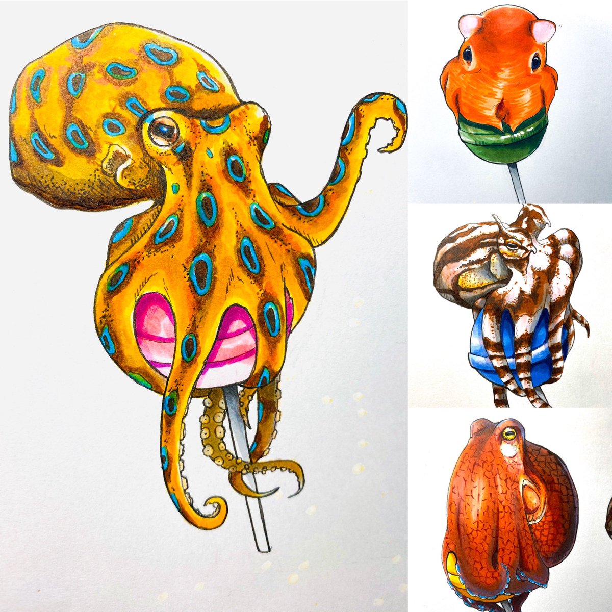 5 21 深海魚まつり2日目です!! 豆皿が減った分ミニ原画を描きました🐙🦈蒲郡でお待ちしております🙇♂️ #海ものづくし #深海魚まつり 22/10/30 09:17