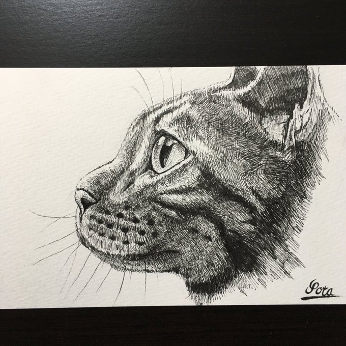 3 20 本日は #猫の日 🐈 にゃんこ 意外と描いてるの少ないな🤔あー、撫でまわしたい…。 #ペン画 #ねこ 20/02/22 00:39