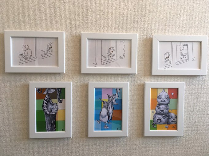 0 14 実家の壁は兄妹ミニギャラリー😌 そろそろ、2人展したいね… #イラスト #いきもの 20/03/26 15:41