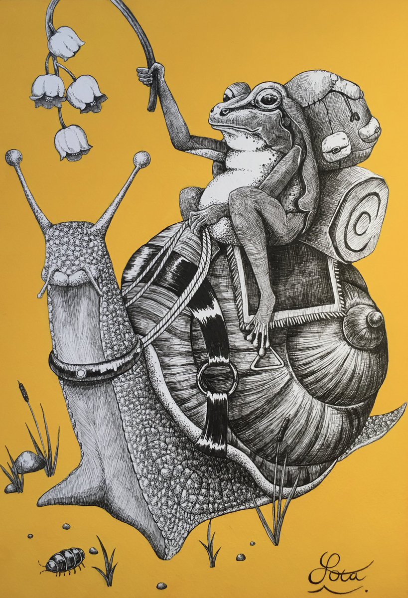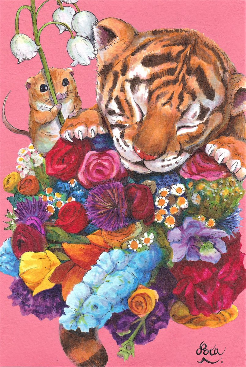 "おくりもの" /pen/acrylic/copic 2020.04.12 頑張っている方たちに、少しでも幸せが届きますように。 #おうち時間 #イラスト #いきもの