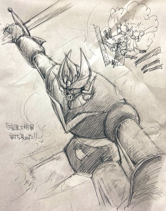 #ダイナミックプロ作品版深夜の真剣お絵描き60分一本勝負 ご無沙汰しております🙇♀️ 〈フリー〉と〈黒〉で黒っぽいグレンダイザーを。 iPhoneで見ると、どうしても色に紫がかかっちゃうなぁ💦