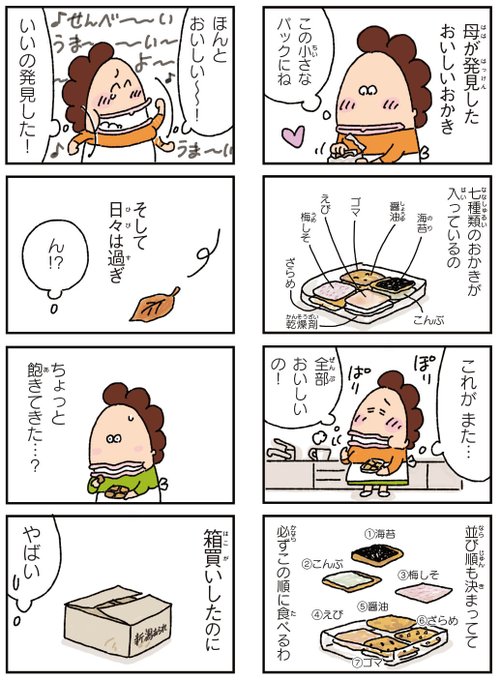 こちらですね😃 そういえば、キンプリの岸優太さんが「自分のせんべい好きは「あたしンち」の母が食べてて美味そうだったから」と言ってくれてた気がします😃 【オール新作】「あたしンちSUPER②巻」発売中 amzn.to/3IipQKU twitter.com/_p0v0q/status/…