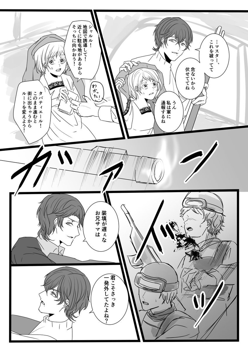 ⚠️顔出しマスター♀います シャスマス寄り 戦場じゃないシーンの銃撃戦描いてみたかったけど難しかった😂 いつかリベンジしたい (1/2) #1014Rプラス