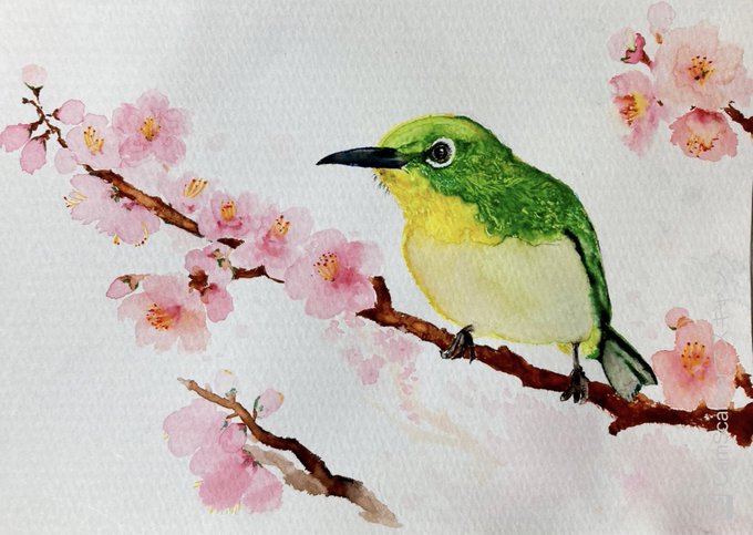 7 62 #イラスト #水彩 #イラスト練習 「春は目白押し」 22/04/07 19:43