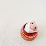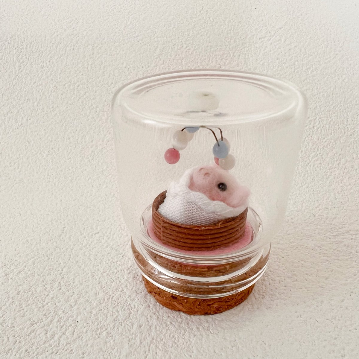 ぶたの赤ちゃん、メリーもらったよ🎁 じーっと見つめて興味津々🐽💕 #ハンドメイド #handmade #羊毛フェルト #ミニチュア #needlefelting #miniature #ハンドメイド好きさんと繋がりたい