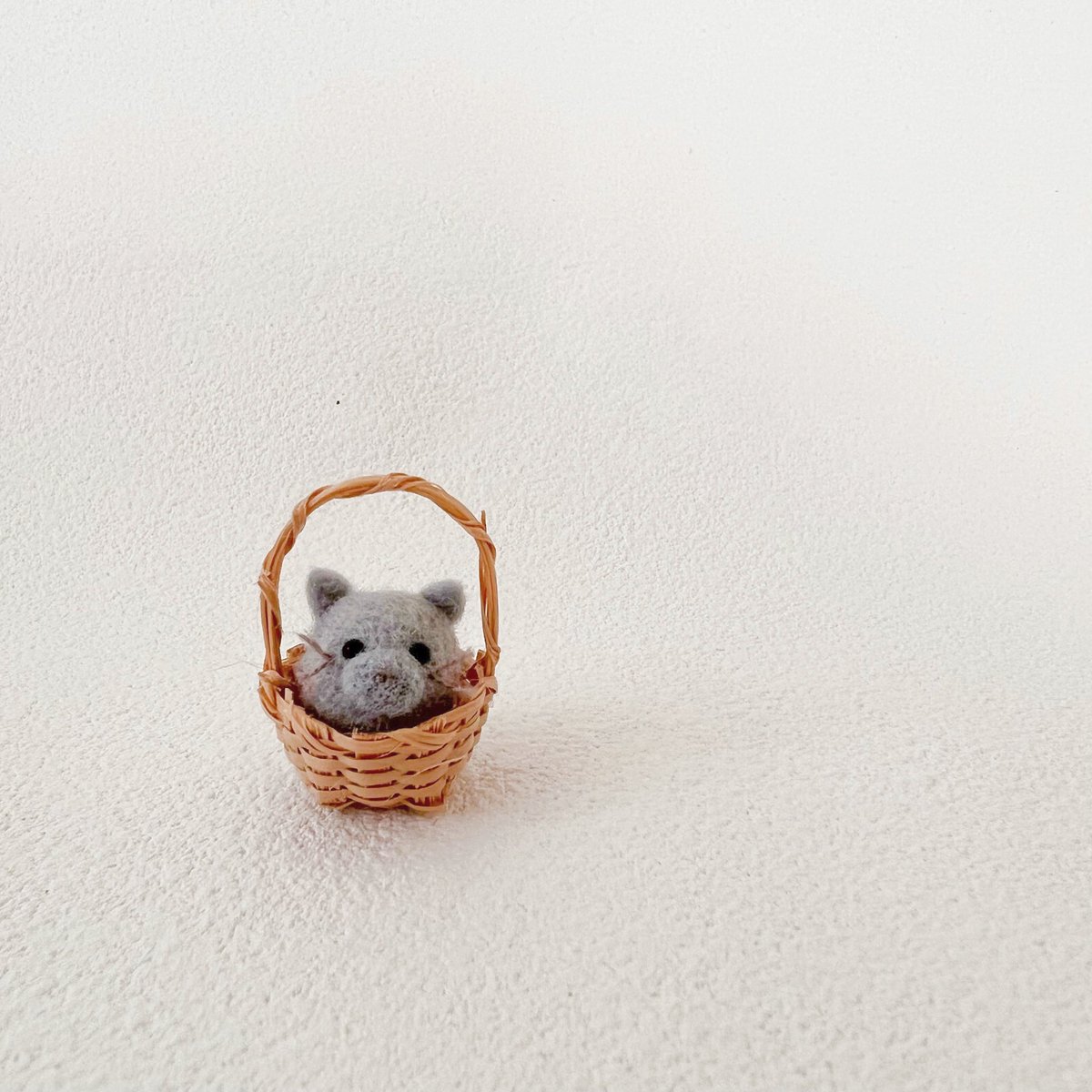 ねこの赤ちゃん👶💕 カゴがお気に入り🐱 #ハンドメイド #handmade #羊毛フェルト #ミニチュア #needlefelting #miniature #ハンドメイド好きさんと繋がりたい